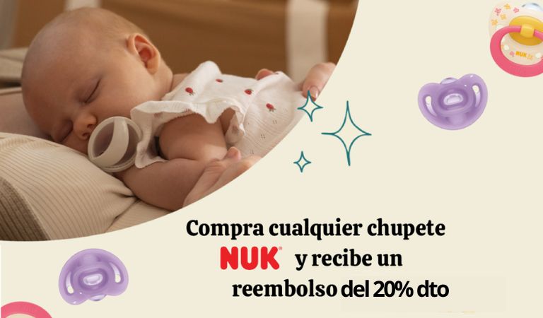Ahora por la compra de cualquier chupete Nuk recibe un reembolso del -20% DTO